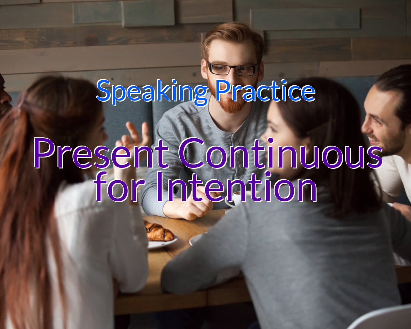 Practice speaking by answering rapid-fire questions in a short conversation format. The focus is on using the present continuous tense to talk about plans or intentions.